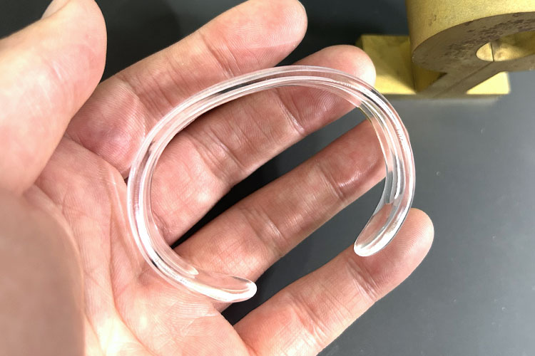 这款 **亚克力手环** 是使用 **C180II 桌上型激光雕刻机** 制作而成,包含激光切割亚克力板、加热弯折与抛光的完整流程。