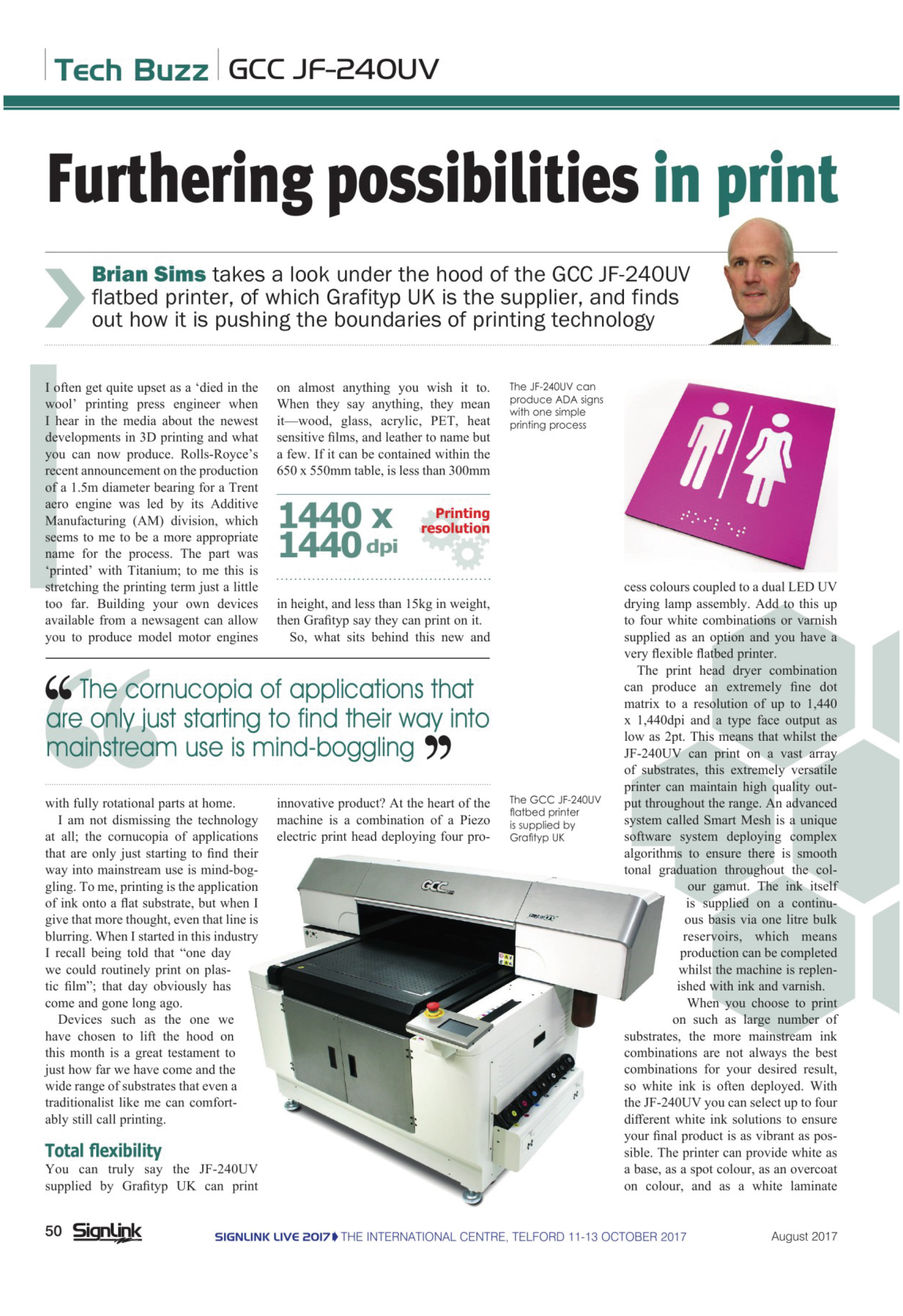Brian Sims takes a look under the hood of the GCC JF-240UV flatbed printer, of which Grafityp UK is the supplier, and finds out how it is pushing the boundaries of printing technology.