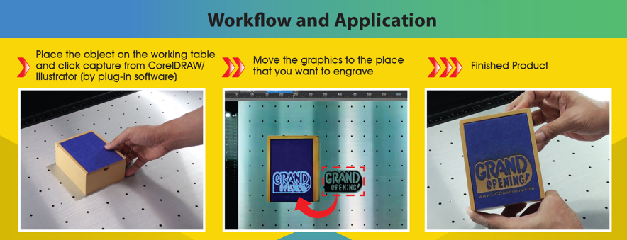 Поступая таким образом, вы можете выровнять свой дизайн / текст по объекту в CorelDRAW/Illustrator и запустить задание. Больше нет необходимости беспокоиться о том, как расположить / выровнять графику вручную с помощью лазерного станка. Визуальный дизайн и расположение сокращают рабочий процесс лазера, а остаточные материалы могут быть лучше использованы; Он также может работать с CCD SmartVision Pro, обеспечивая простой и понятный рабочий процесс для печати и резки.