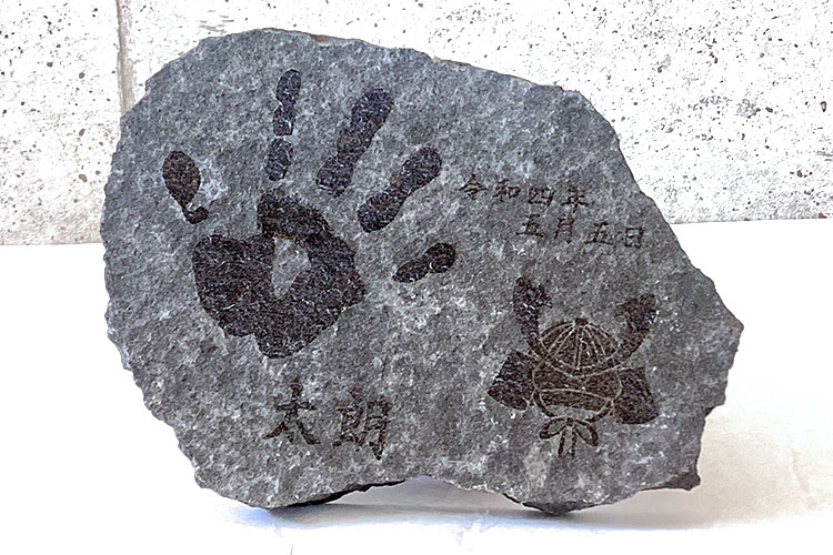 Гравировка камня с рисунками детей, буквами, записями о росте и другими свободными дизайнами