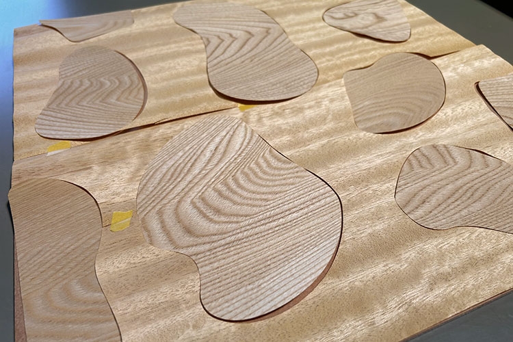 При использовании традиционных режущих машин материалы могли резаться только по прямым линиям, что ограничивало возможности дизайна. Однако некоторые клиенты запрашивали декоративные панели со шпоном сложной формы. Мы решали эту задачу с помощью ручной резки, но точность размеров была нестабильной, а процессы резки и ламинирования занимали значительное время.