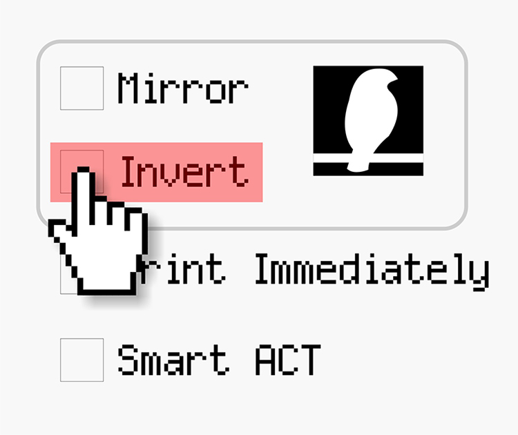 | You can use image editing software to perform the Invert conversion or simply check the Invert function in the Driver for laser engraving. |