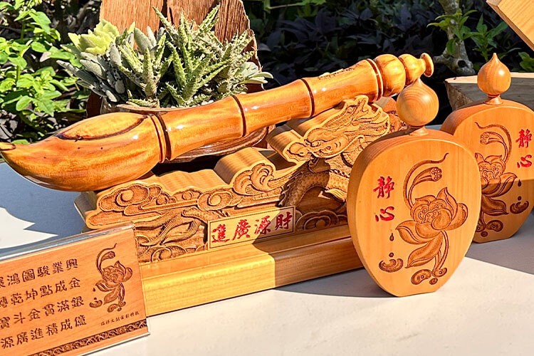 | We are delighted to have interviewed Ruei Shiang Cultural & Creative Laser Technology, where Mr. Wang, the president, is also a board member of the Taiwan Laser Technology Application Association. He shared with us his successful journey of transitioning from traditional woodworking to the cultural and creative industry through the use of laser engraving machines. Company Name: Ruei Shiang Cultural & Creative Laser Technology ![]() Injecting New Life with the Introduction of GCC LaserProThe Wang family is a local squire in Taichung, Taiwan. After apprenticing and successfully mastering the art of wood carving, they established a factory and laid a solid foundation for their business. Mr. Wang, the third generation of Ruei Shiang, stated, "In the early years, we produced various everyday crafts such as turtle-shaped seals, peach pattern seals, and wedding cake molds. However, with the changing times, we shifted our focus to the carving of Buddhist items, deity worship supplies, and ancestral shrine artifacts. These have become our primary areas of research, production, and sales, and it has been over 60 years now." Mr. Wang inherited his woodworking skills from his father since childhood. In recent years, as traditional industries have gradually declined, he decided to breathe new life and ideas into the business by introducing GCC LaserPro laser engraving technology. ![]() Mercury III's engraved image products have received great reviews. Transforming technology into art with laser engraving"Though machines from China are inexpensive, GCC laser machine and software is truly convenient," said Mr. Wang, who had no computer experience. Through trial and error and self-learning, he, with the help of GCC's user-friendly interface, quickly achieved the engraving effects he desired. In 2016, the company earned second place in the Taiwan International Laser Exhibition Craft Competition with their work titled "Illuminating Taiwan." He combined technology with art in new creative ways, including developing and designing cultural & creative products and laser engraving on wood and lacquer art. Mr. Wang believes that GCC's image processing is exceptionally exquisite, allowing him to create more delicate 3D and image engravings than other laser machine brands. Combined with his creative designs, customers always come to him to place orders after seeing Ruei Shiang's products somewhere. He also mentioned that GCC's laser machine is stable and durable, capable of continuous operation from morning to night, ensuring consistent product output and quality. As a result, when the company needed to renew the laser engraving machine, they still chose Mercury for production. The advantage of the laser engraving machine is that it doesn't require any templates, enabling small quantities, customization, and shorter delivery times.