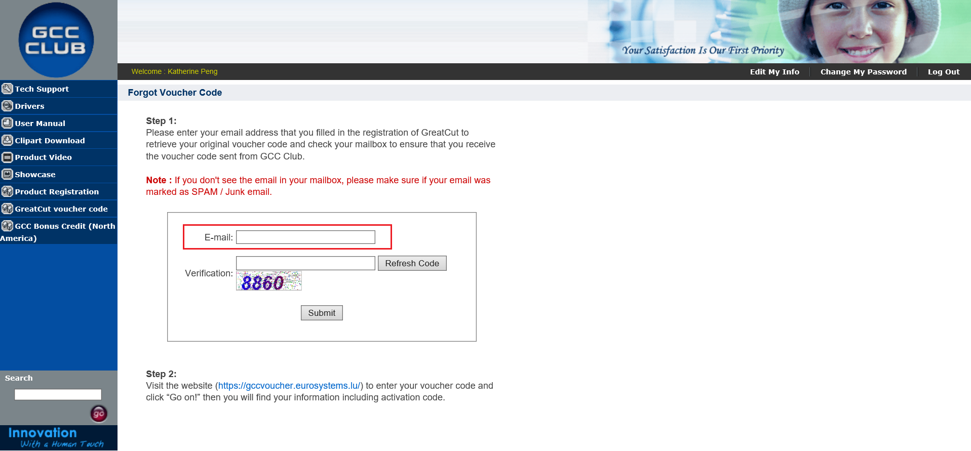 GCC推出了一項新的線上服務,用戶可以輕鬆地從GCC俱樂部 (http://club.gccworld.com). 取回憑證代碼。如果您曾經在網上註冊過 GreatCut (http://gccvoucher.eurosystems.lu), 您可以在線上服務中填寫您原來的電子信箱來找回您的憑證代碼。